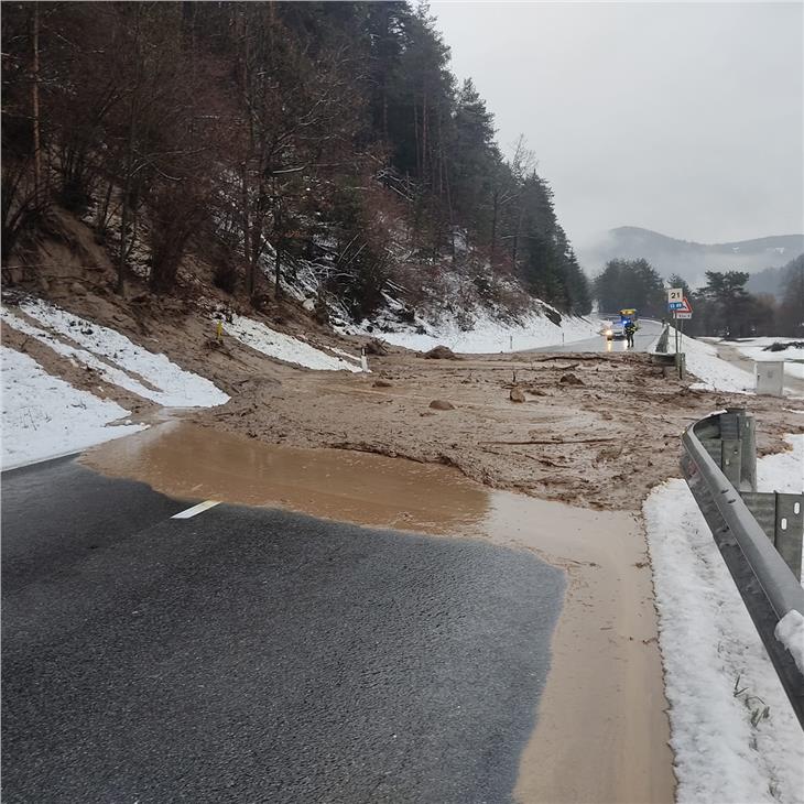 - Nach einem Erdrutsch ist die Pustertaler Straße bei St. Sigmund unpassierbar. (Foto: Landesfeuerwehrverband) [JPG 99 KB]