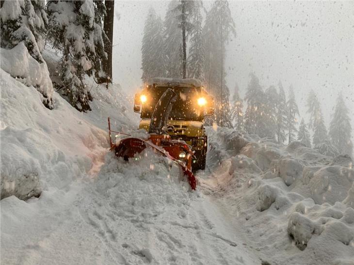 - Die 480 Straßenwärter des Landesstraßendienstes räumen mit 220 Fahrzeugen die Verkehrswege frei, im Bild im hinteren Passeiertal. (Foto: Landesstraßendienst) [JPG 65 KB]