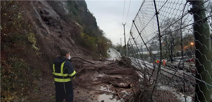 - Vom Virgl in Bozen ging eine Mure bis auf die Bahngeleise ab. (Foto: Berufsfeuerwehr Bozen) [JPG 58 KB]