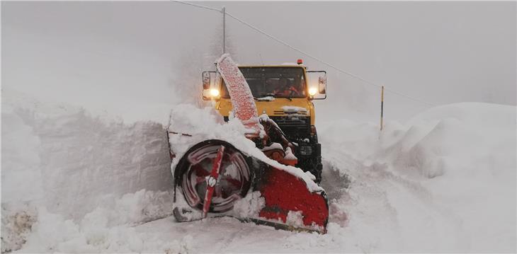 - Landauf und landab ist der Landesstraßendienst mit Räumarbeiten befasst, im Bild heute (7. Dezember) am Gampenpass. (Foto: Landesstraßendienst) [JPG 24 KB]