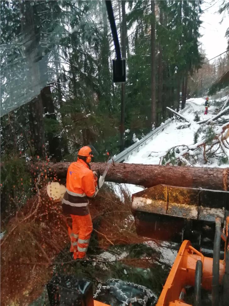 Der Landesstraßendienst setzt alles daran, die durch die äußerst ergiebigen Niederschläge der vergangenen Tage aufgetretenen Schäden zu beheben, 480 Straßenwärter arbeiten mit 220 Fahrzeugen schichtweise rund um die Uhr. "Die Situation", berichtet Abteilungsdirektor Philipp Sicher, "entspannt sich langsam, alle Straßen sind so weit wieder freigeräumt, dass sie für Notfalleinsätze und mit Versorgungsfahrten befahrbar sind".