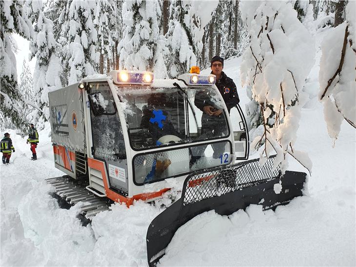 - Der Landesfunkdienst auf dem Weg zum Umsetzer in St. Nikolaus in Ulten, mit Schneekatze und mit Unterstützung der Freiwilligen Feuerwehr (Foto: Agentur für Bevölkerungsschutz/Landesfunkdienst) [JPG 93 KB]