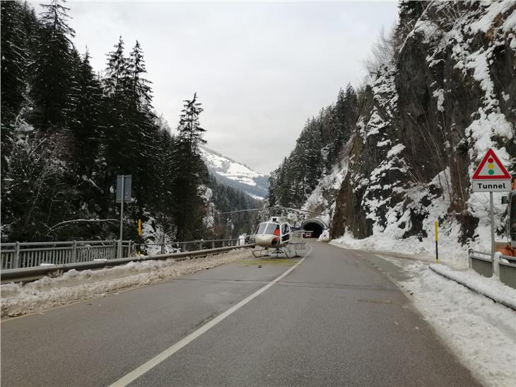 Auch mittels der Hilfe eines Hubschrauberfluges haben die Verantwortlichen die Sicherung der Gefahrenstelle inspiziert. (Foto: LPA/Straßendienst)