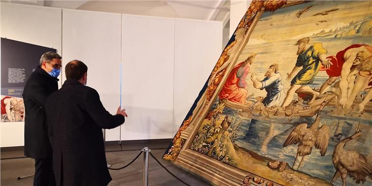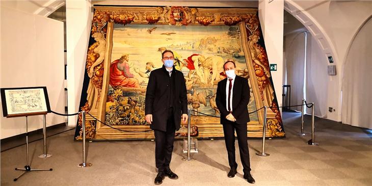 - LH Kompatscher und LR Vettorato vor dem Wandteppich des Renaissancekünstlers Raffael (Foto: LPA) [JPG 47 KB]