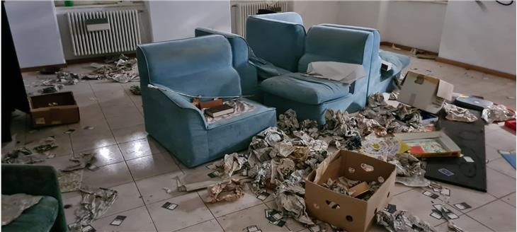 - Beim Lokalaugenschein wurden verschmierte Wände, zerstörte Einrichtung und Bäder sowie Müllablagerungen festgestellt. (Foto: LPA/Landesamt für Bauerhaltung) [JPG 34 KB]