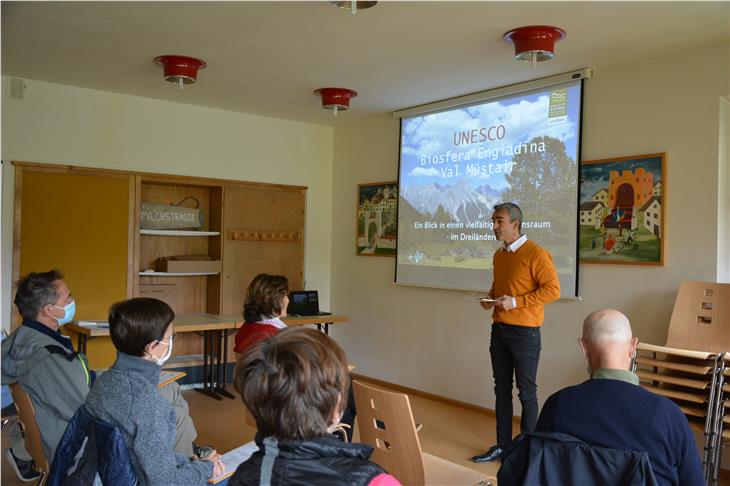 Wie ein Biosphärenreservat in der Praxis funktioniert, berichtete Angelika Abderhalden von der Geschäftsstelle UNESCO Biosfera Engiadina Val Müstair. Biosphärenreservate werden im Rahmen des UNESCO-Programms "Der Mensch und die Biosphäre" (MAB) eingerichtet. "Dort stehen der Schutz der biologischen Vielfalt und der natürlichen Ressourcen im Einklang mit deren nachhaltigen Nutzung", erklärte Abderhalten und brachte einige Best Practices aus dem Engadin-Val Müstair, das sich seit Juni 2017 Biosphärenreservat nennen darf.