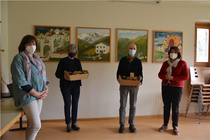 - Dank an die beiden internationalen Experten Angelika Abderhalden und Enrico Vicenti (2. u. 3. v.l.) kam von LRin Hochgruber Kuenzer (r.) und Manuela Wallnöfer (l., Erlebnisschule Langtaufers). (Foto: LPA/Marcella Morandini) [JPG 44 KB]