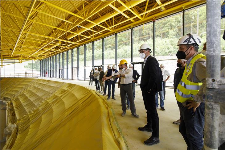Landeshauptmann und Sportlandesrat Arno Kompatscher hat die Baustelle der neuen Anlage heute (4. Juni) im Rahmen einer Besichtigungstour durch das Pustertal gemeinsam mit dem Bürgermeister von Bruneck, Roland Griessmair, Vertretenden von Gemeindeverwaltung, Stadtwerken sowie Sport- und Freizeitverbänden besucht. Begleitet wurde die Delegation von den für den Bau und die künftige Führung der Anlage Verantwortlichen.