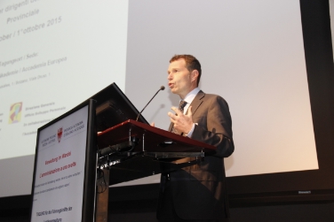Secondo Staffler, saranno necessari "processi di sviluppo culturale e strutturale", e i dirigenti saranno chiamati a organizzare servizi sempre più orientati al cittadino. "Un primo importante passo in avanti - ha aggiunto il direttore generale - lo stiamo già compiendo grazie all'introduzione dei piani di performance all'interno delle varie Ripartizioni". Il convegno è quindi proseguito con l'intervento di Eckhard Schröter, docente dell'Università Zeppelin di Friedrichshafen, il quale ha parlato di "strutture organizzative flessibili e orizzontali". Secondo Schröter, inoltre, un'amministrazione moderna ha bisogno di collaboratori che abbiano le necessarie conoscenze e capacità di comunicazione e di utilizzo dei media, e che sappiano muoversi in maniera flessibile e interdisciplinare. La prima parte del convegno "Amministrazione a una svolta" si è conclusa con l'intervento di Gianni Agnesa del Dipartimento funzione pubblica Formez sugli scenari evolutivi previsti a livello europeo per i dirigenti pubblici, mentre nel pomeriggio i partecipanti si sono divisi in diversi workshop e gruppi di lavoro. Alle 16.30, inoltre, sono in programma gli interventi del presidente Arno Kompatscher e dell'assessora all'amministrazione, Waltraud Deeg.