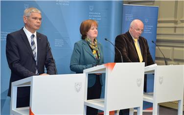 - Salvaguardia della sicurezza e prevenzione dei rischi sul luogo di lavoro al centro del bilancio attività 2015 dell'Ispettorato del lavoro da sx a dx.: il dir. Rip. Helmuth Sinn, l'assessora Martha Stocker, il dir. Uff. Sieghart Flader - Foto: USP/Maria Pichler [JPG 15 KB]