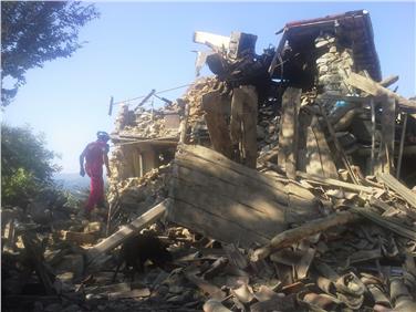 - Unità cinofile della Protezione civile altoatesine durante le operazioni di scavo fra le macerie ad Amatrice (Foto USP/Agenzia protezione civile) [JPG 21 KB]