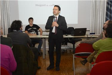 Sala “Finetto” nel quartiere bolzanino di Don Bosco affollata e grande interesse dei presenti ieri sera, 8 febbraio, in occasione dell’incontro voluto dall’assessore provinciale alla Cultura Italiana Christian Tommasini per presentare e spiegare la filosofia di base del progetto “Negozi e Cultura/Kulturläden”, presente il presidente del Consiglio di quartiere, Alex Castellano. Tra le persone invitate, i presidenti delle associazioni e delle cooperative culturali, educative e giovanili e delle biblioteche. Circa una quarantina le persone che hanno raccolto l’invito dell’assessore Tommasini.