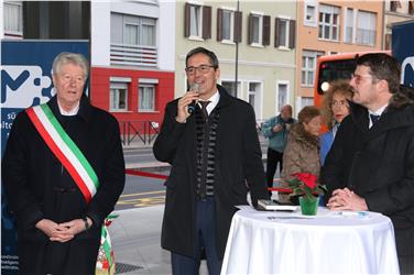 Realizzata a tempo di record in appena 7 mesi, la nuova autostazione di Bolzano è pronta per entrare in funzione con il nuovo orario invernale. Il presidente della Provincia Arno Kompatscher e il sindaco di Bolzano, Renzo Caramaschi, hanno inaugurato ufficialmente questa mattina (9 dicembre) la nuova struttura di via Renon che diventa non solo punto di arrivo e partenza degli autobus extraurbani, ma che mette a disposizione degli utenti un nuovo Infopoint. "L'autostazione del capoluogo non può essere considerato un progetto solamente bolzanino - spiega Arno Kompatscher - bensì uno degli snodi chiave della mobilità pubblica di tutto l'Alto Adige grazie anche alla sua vicinanza con la stazione ferroviaria che la rende piattaforma di scambio ideale fra mezzi diversi". Secondo il sindaco Renzo Caramaschi, "l'autostazione di via Renon apre un nuovo capitolo per il trasporto pubblico in città e contribuisce a rinnovare il centro urbano", mentre il presidente di STA (Strutture trasporto Alto Adige), Martin Ausserdorfer, sottolinea la grande sfida raccolta, e vinta, di una realizzazione in tempi così brevi. "Il nuovo Infopoint - aggiunge Ausserdofer - rappresenta un punto di contatto fondamentale per i passeggeri e offre un servizio di sportello e di informazioni, oltre ad una biglietteria automatica".