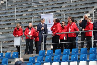 - Foto di gruppo per la delegazione "olimpica" sulle tribune dell'Arena Alto Adige di Anterselva (Foto USP/mb) [JPG 27 KB]