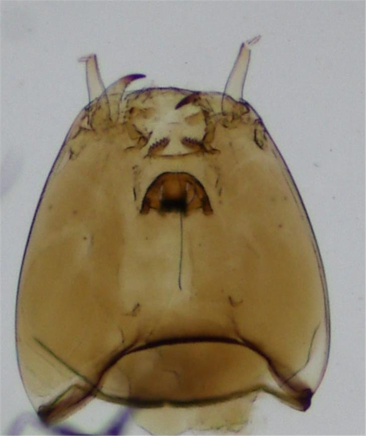 - Testa della larva di chironomide Procladius choreus, un insetto che si trova sul fondo del lago di Caldaro (Foto: Agenzia ambiente e tutela clima, Renate Alber) [JPG 42 KB]
