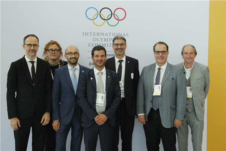 - Il presidente Arno Kompatscher entra con la delegazione italiana durante la presentazione della candidatura Milano-Cortina (Foto USP/mb) [JPG 27 KB]