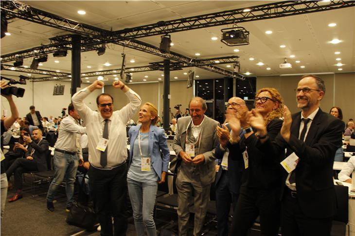 - L'esultanza della delegazione altoatesina a Losanna (Foto USP/mb) [JPG 57 KB]