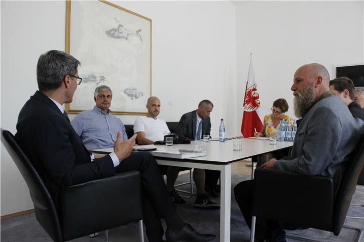Il comandante provinciale degli Schützen, Jürgen Wirth Anderlan, ed i componenti del nuovo direttivo, eletti in aprile, Renato des Dorides, Egon Zemmer, Franzjosef Roner e Richard Andergassen sono stati ricevuti questa mattina (28 giugno) a Palazzo Widmann dal presidente della Provincia, Arno Kompatscher. Il Landeshauptmann ha sottolineato l’importanza dell’impegno a favore del territorio, per la tutela della tradizione e per il rafforzamento della cultura popolare, affermando che "solo chi ha forti radici può essere aperto al nuovo ed affrontare con fiducia le sfide future".