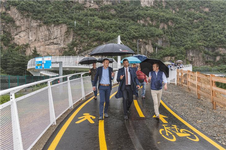 - Gli assessori Vettorato Alfreider sono stati tra i primi a transitare per il ponte (Foto USP/Peter Daldos) [JPG 90 KB]