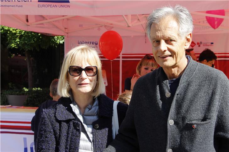 Veronika e Klaus Mayr (47 e 54 anni) vivono a Egna. Solo grazie a questa festa, dice, Klaus è diventato consapevole della "grande importanza che l'Euregio ha per noi: possiamo solo trarre profitto dal punto di vista culturale ed economico, ed è bello che le persone di tutti e tre i paesi vedano quanto Egna sia un luogo bello e interessante". Veronika spera che "l'idea europea si realizzi sempre più compiutamente. L'Euregio è un piccolo passo verso il superamento di tutti i piccoli pensieri nazionalistici". L'atmosfera positiva e l'interessante mix di ottimi prodotti contadini e buona musica hanno fatto in questo contesto la propria parte.