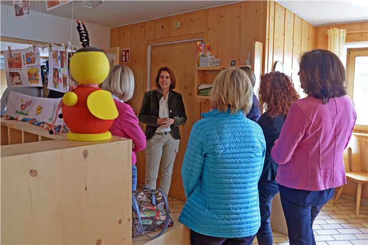 L’assessora provinciale alla famiglia ed alle politiche sociali, Waltraud Deeg, ha guidato oggi (26 settembre) una delegazione del Consiglio provinciale composta dalle Magdalena Amhof, Brigitte Foppa, Ulli Mair e Maria Elisabeth Rieder nella visita a tre strutture di assistenza all’infanzia rispettivamente presso la Tagesmutter Sonja Spitaler di Laives, alla microstruttura per la prima infanzia di San Genesio ed all’asilo nido “La farfalla” di Bolzano.