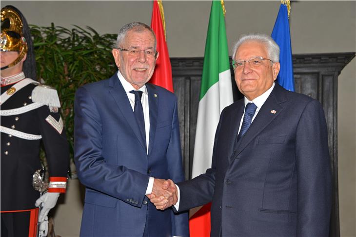 - Stretta di mano fra i presidenti Mattarella e Van der Bellen (Foto: ASP/Daldos) [JPG 46 KB]