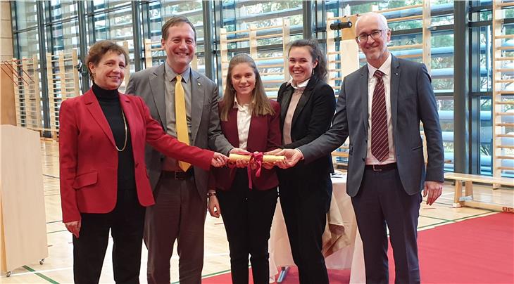 In un unico edificio di 17.000 metri cubi sono da oggi ospitate, una sopra l’altra, le nuove palestre della scuola provinciale alberghiera Kaiserhof e della scuola professionale provinciale alberghiera Savoy. L’assessore all’edilizia pubblica Massimo Bessone oggi (5 dicembre), nel corso della cerimonia di inaugurazione, ha consegnato gli spazi ai futuri utilizzatori, gli studenti, e ai direttori Hartwig Gerstgrasser (Kaiserhof) e Beatrix Kerschbaumer Sigmund (Savoy).  "Quando si parla di edifici pubblici si attraversano varie fasi, dalla progettazione fino alla posa della pietra, per arrivare poi al momento più bello e importante, la cerimonia di consegna dell’opera ai futuri utilizzatori", ha detto Bessone. "L’educazione fisica – ha aggiunto, esprimendo soddisfazione per il fatto che le strutture siano già utilizzate – non è solo importante per tenersi in forma, ma crea comunità e spirito di team. Può essere inoltre la base per arrivare alle grandi prestazioni dei grandi atleti che la nostra esprimere in tante discipline". L’assessore ha ricordato che le due palestre saranno utilizzate anche da varie associazioni sportive; un valore aggiunto, questo, sottolineato con soddisfazione anche dal sindaco di Merano Paul Rösch. I due direttori Gerstgrasse e Kerschbaumer hanno posto l’accento sulla crescente importanza dell’educazione fisica dei ragazzi, che ora hanno a disposizione strutture moderne e ben attrezzate.