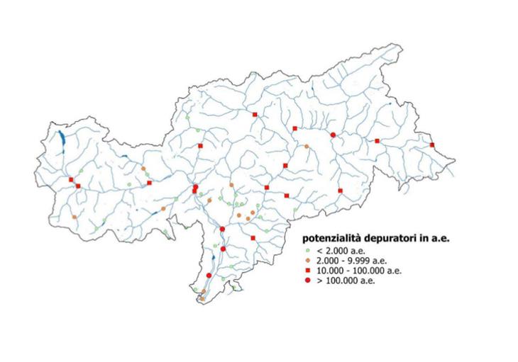 - I 50 impianti di depurazione pubblici delle acque reflue dell'Alto Adige (Fonte: Agenzia ambiente e tutela clima) [JPG 32 KB]