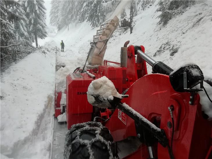 Vigili del fuoco volontari e del Corpo permanente impegnati in Val d'Ultimo con le frese antineve (Foto: Corpo permanente Vigili del fuoco)