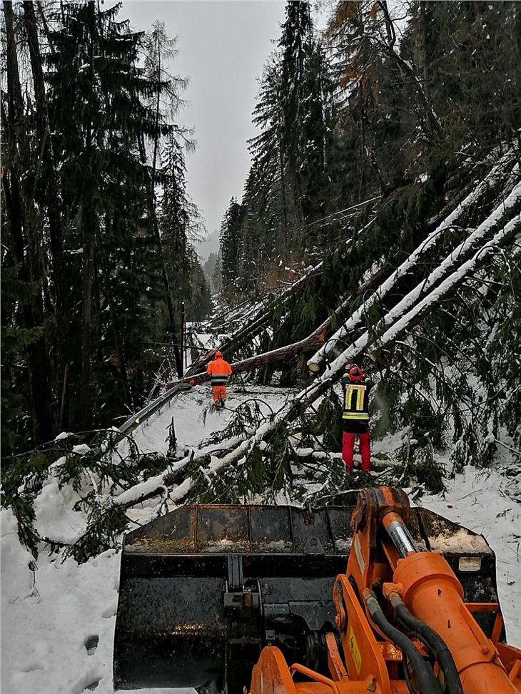- Inervento dei vigili del fuoco a San Leonardo in Passiria per liberare la strada. (Foto: Ufficio strade) [JPG 193 KB]