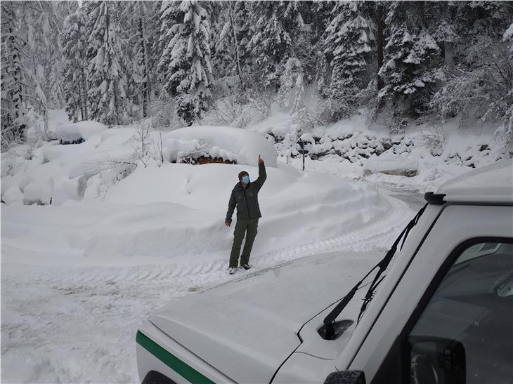 Il Servizio strade della Provincia in azione presso la galleria di collegamento tra la Val d'Ultimo e Proves (Foto: ASP/Servizio strade)