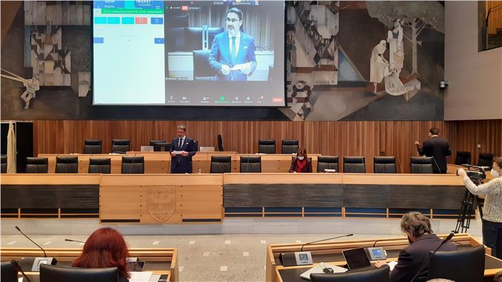 - Appello alla solidarietà e alla coesione sociale da parte del presidente Kompatscher nella sua relazione al bilancio 2021. (Foto: ASP/Guido Steinegger) [JPG 53 KB]
