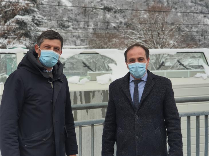 - Gli assessori Daniel Alfreider e Giuliano Vettorato durante il sopralluogo (Foto: ASP/Thomas Laconi) [JPG 55 KB]