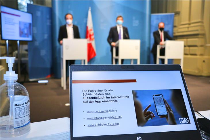 Autobus aggiuntivi garantiranno più sicurezza per il ritorno a scuola il 7 gennaio. Il Dipartimento provinciale mobilità e infrastrutture, la Ripartizione provinciale mobilità e le Intendenze scolastiche nelle scorse settimane hanno collaborato strettamente con le scuole e con il Commissariato del Governo di Bolzano per porre le condizioni di un servizio di trasporto scolastico sicuro ed efficiente. A disposizione ci saranno 180 bus aggiuntivi, per circa 380 corse in più al giorno. I dettagli del potenziamento del trasporto scolastico sono stati illustrati oggi (5 gennaio) a Bolzano in conferenza stampa dagli assessori alla scuola Giuliano VettoratoDaniel Alfreider e Philipp Achammer.