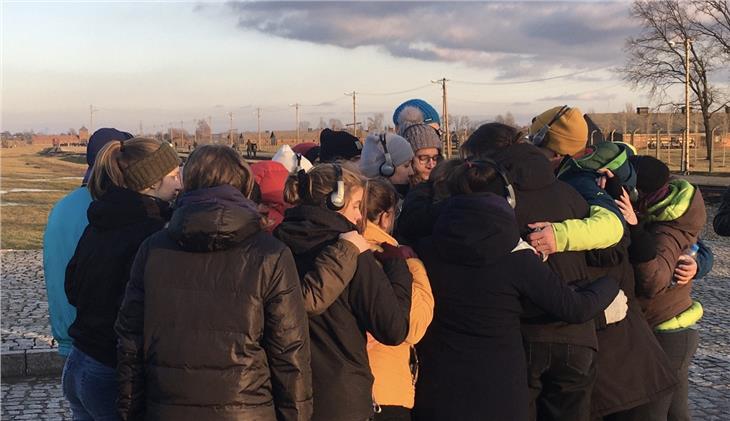 La visita ad Auschwitz, prima del Covid, si concludeva con un grande cerchio e abbracci finali (Foto ASP/Fabio Gobbato)