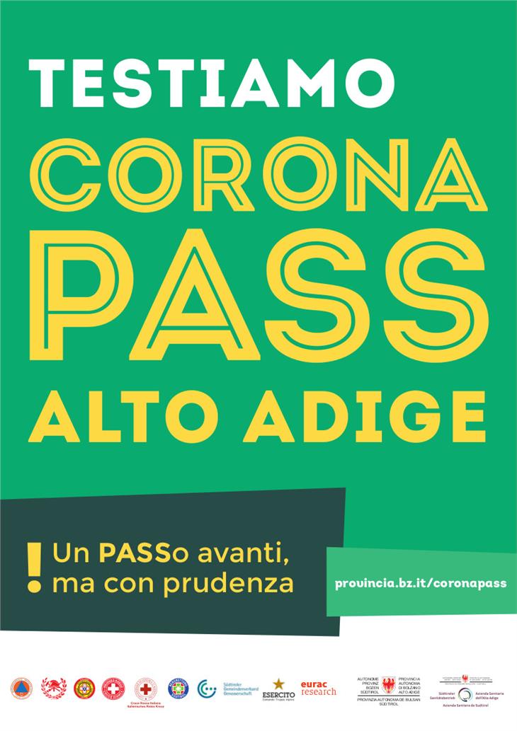 Per rendere davvero efficace il Corona-Pass, secondo l’assessore alla protezione civile, Arnold Schuler, sarà fondamentale la partecipazione all’azione “Testiamoci”, che offre test nasali gratuiti su tutto il territorio. Sino ad ora sono stati utilizzati 400.000 kit di test, a partire da lunedì 26 aprile saranno operative 80 stazioni di test in 69 dei 116 comuni dell'Alto Adige: tutte le informazioni sono a disposizione sul portale web www.provincia.bz.it/coronatest. “Questi progetti – ha aggiunto Schuler – rappresentano una grande opportunità di ripartenza per gli operatori turistici, visto che in futuro potranno essere utilizzati non solo dai residenti, ma anche dagli ospiti. Mi auguro che il mondo dell’economia partecipi e sostenga queste iniziative”.