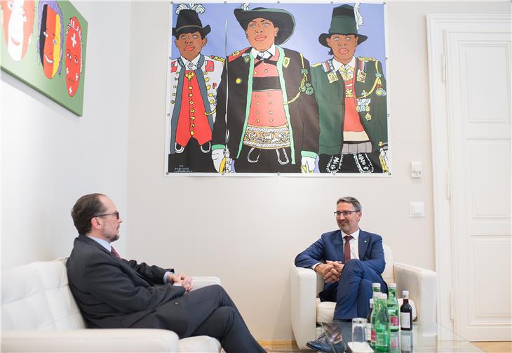 Il presidente Van der Bellen (sx) e il presidente Kompatscher a colloquio sui temi dell'Autonomia. (Foto: Carina Karlovits/HBF)