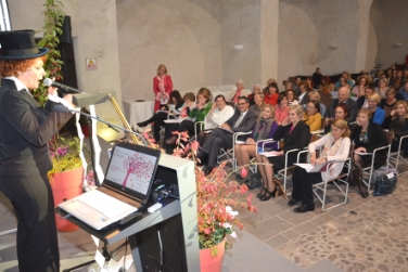 La poetry-slammer Lene Morgenstern e le musiciste Manuela Kerer e Helga Plankensteiner hanno accompagnato con musica, installazioni sonore e testi la festa per il giubileo, moderata da Beatrix Unterhofer.