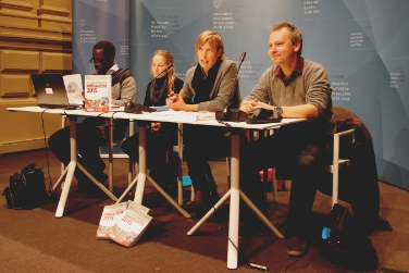 - Fernando Biague, Monika Weissensteiner, la dir. del Dipartimento Vera Nicolussi-Leck e Matthias Oberbacher alla presentazione del "Dossier statistico immigrazione 2015" - Foto: USP/mb [JPG 82 KB]