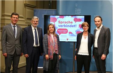 Nel corso della conferenza stampa, all’insegna del motto “Sprache verbindet/La lingua unisce” l’assessore Achammer ha sottolineato che gli sforzi attuati dal suo Dipartimento nel settore del plurilinguismo si basano, tra l’altro, sulla considerazione di fondo che “La conoscenza di una seconda o di una terza lingua non rappresenta in alcun modo un pericolo, essa è invece un prezioso arricchimento per chi la apprende sia sotto il profilo umano e sociale che per il suo futuro inserimento nel mondo del lavoro.