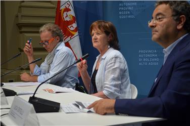 - Sociale: iniziative delle associazioni sostenute con oltre 25 milioni di euro (Foto:USP/B.Franzelin) da sx: Martin Telser, presidente della Federazione per il sociale, l'assessora provinciale Martha Stocker e il direttore della Ripartizione Luca Critelli [JPG 17 KB]