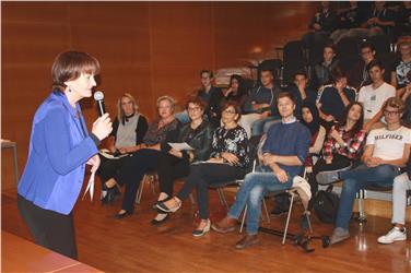 - L'assessora Martha Stocker nel corso del suo intervento all'incontro sulla conclusione della campagna sulle barriere architettoniche Foto: USP/FG [JPG 19 KB]
