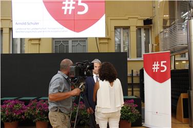 - "Immagini in movimento di un periodo movimentato": con queste parole l'assessore Schuler ha annunciato il video sulla propria attività amministrativa. Foto: UPS/Maja Clara [JPG 22 KB]