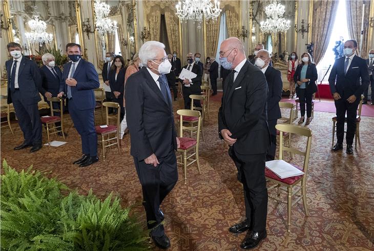 Des 50-jährigen Bestehens der Regionen mit Normalstatut wurde heute (3. August) unter Beachtung der Corona-Schutzmaßnahmen in Rom gedacht. Am Nachmittag empfing Staatspräsident Sergio Mattarella die Präsidenten der Regionen im Quirinalspalast und wies dabei auf die die Bedeutung der Regionen für Demokratie und Bürgerbeteiligung hin. Am Vormittag hatte die Regionenkonferenz zu einer Diskussionsveranstaltung geladen. Für Südtirol nahm Landeshauptmannstellvertreter Giuliano Vettorato an den Feierlichkeiten teil.