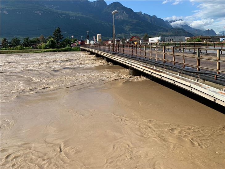 Nach einem angespannten Sonntag (30. August) hat die Agentur für Bevölkerungsschutz um 19 Uhr einen kurzen Rückblick und eine Bestandaufnahme vorgenommen. Demnach bleibt die Lage scwhierig. Bei Branzoll, Neumarkt und Salurn steigen die Pegelstände noch leicht. Hier werden die kommenden fünf bis sechs Stunden entscheiden. Das Problem ist hier weniger die Höhe der Welle als die Belastbarkeit der Dämme.