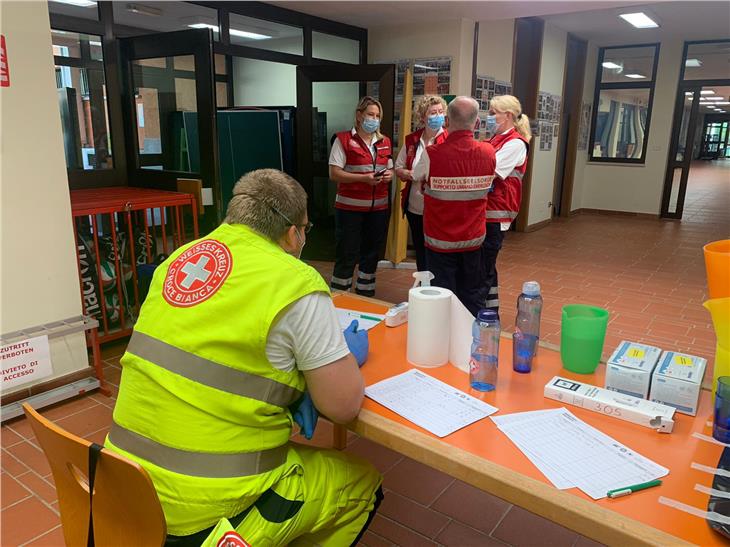 - Registrierung für rund 70 in Neumarkt evakuierten und in der Mittelschule untergebrachten Bürgerinnen und Bürger. (Foto: GNews) [JPG 71 KB]