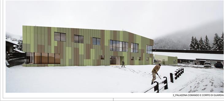 - Rendering des künftigen Kommando-Sitzes, den das Land auf dem Kasernen-Areal errichten wird. (Claudio Lucchin&architetti associati Angelo Rinaldo Daniela Varnier) [JPG 31 KB]