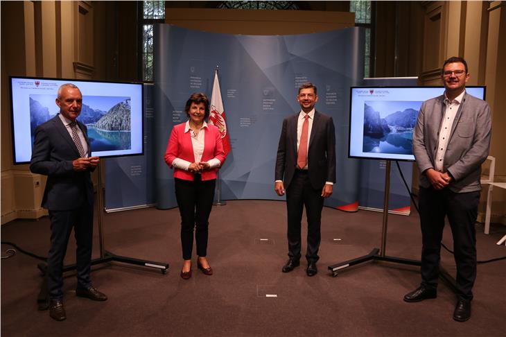 Den Plan Prags 2020 haben Mobilitätslandesrat Daniel Alfreider, die für das Unesco-Welterbe zuständige Landesrätin Maria Hochgruber Kuenzer, der Pragser Bürgermeister Friedrich Mittermair und IDM-Präsident Hansi Pichler heute (2. Juli) in Bozen vorgestellt.